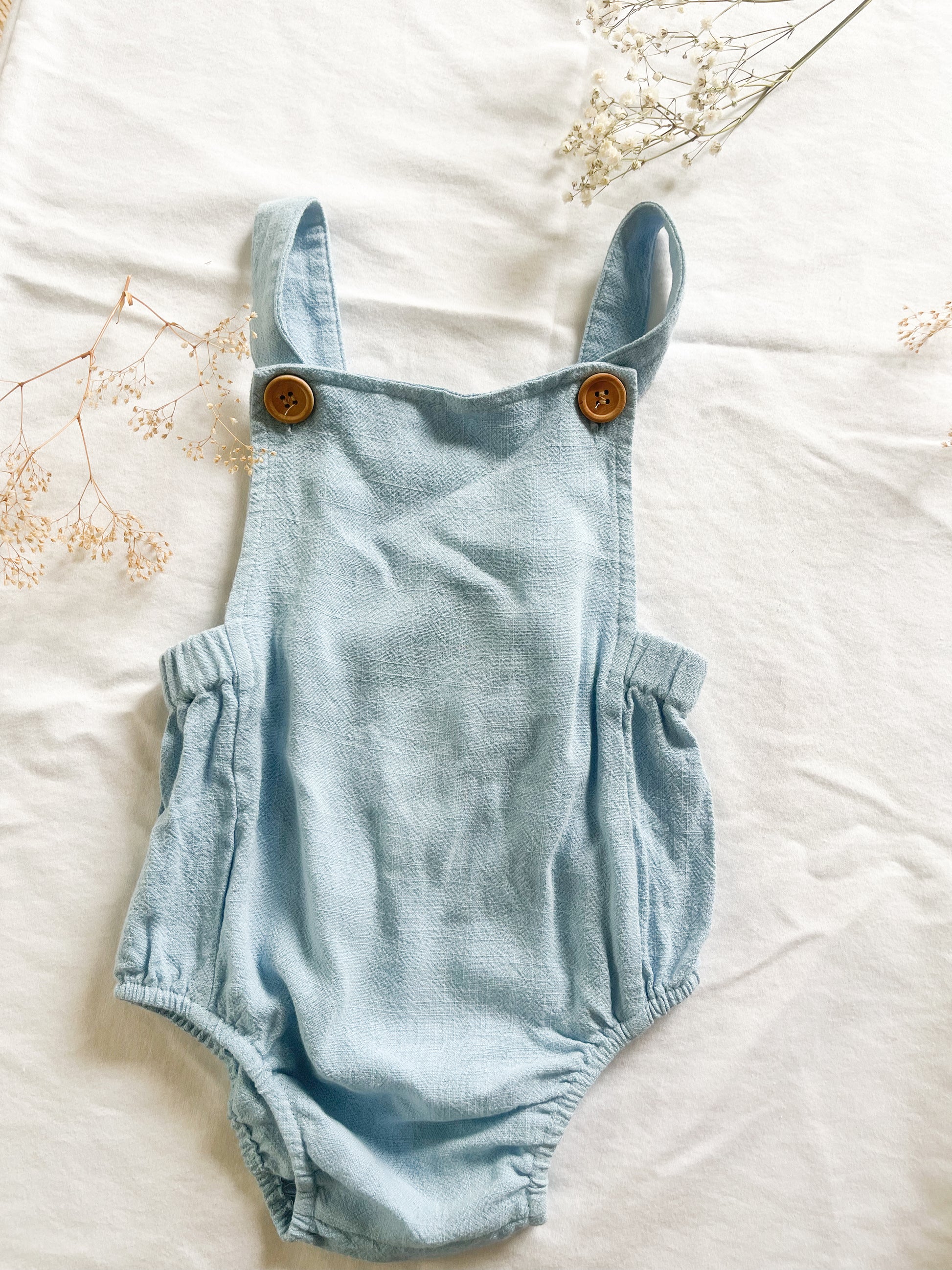 Baby blue linen romper