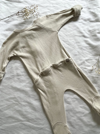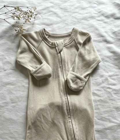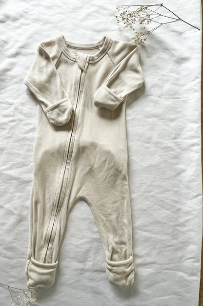 A thoughtfully-designed, organic footie that is versatile, breathable, and SUPER soft. Features two-way zipper for easy diaper changes, a cute bum flap for a quick diaper check, and option for open toes when baby is mobile.
