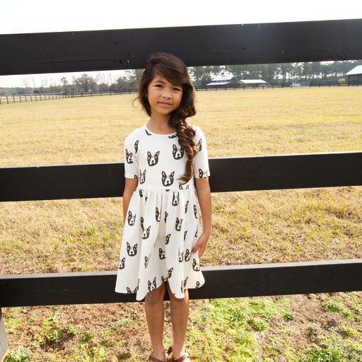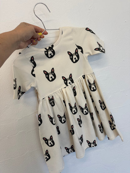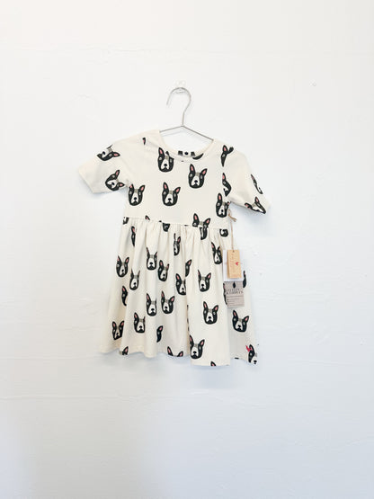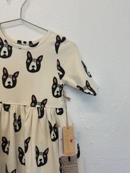Pink chicken organic Steph dress/ Boston Terrier || 2T