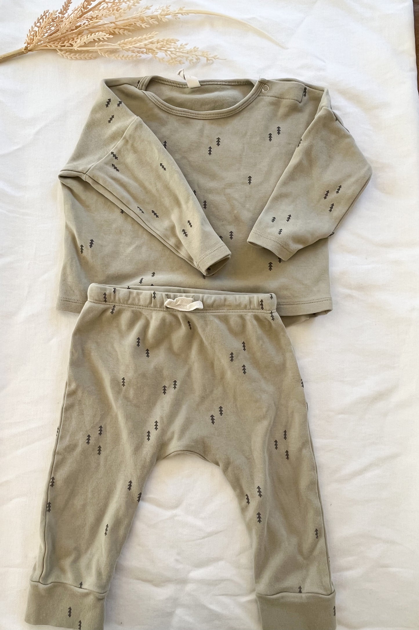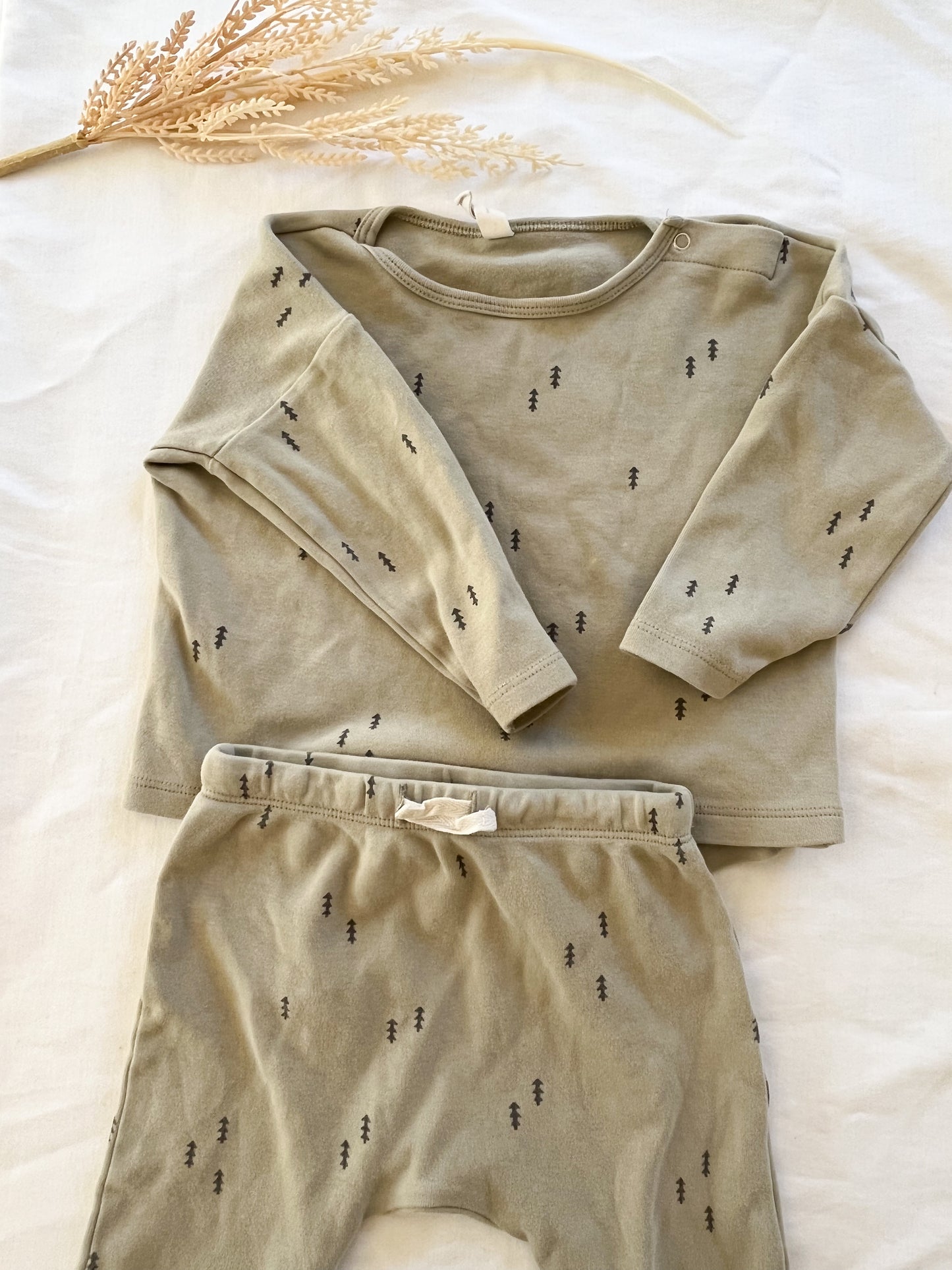 Q by Quincy Mae Baby 2pc Trees Brushed Jersey Set Sage Green